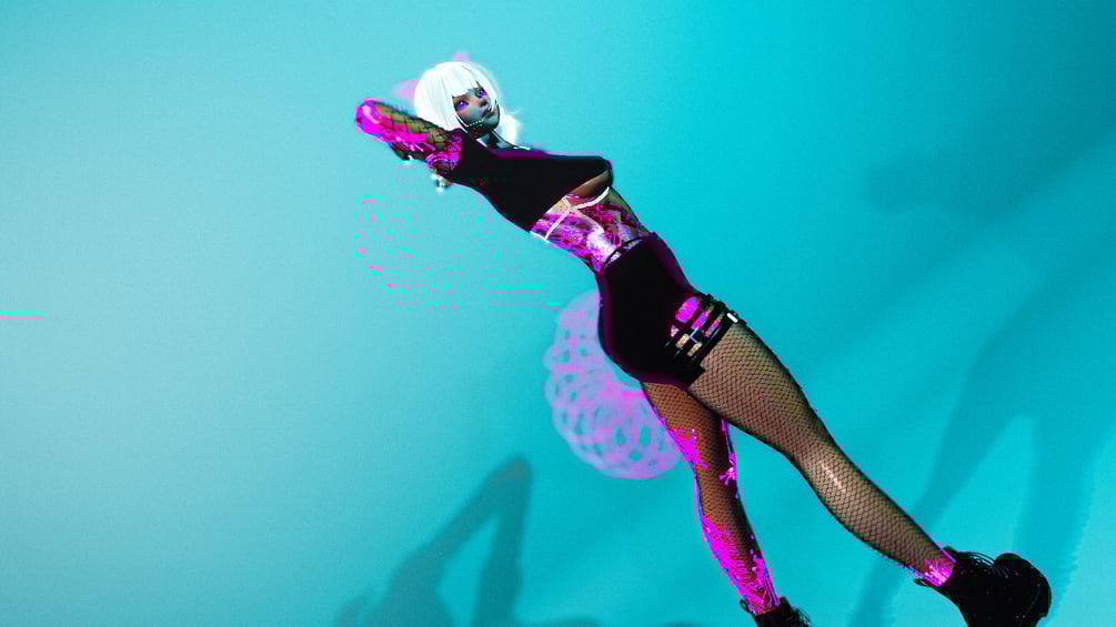 Body Base | Head Base | Tattoo Texture | Heart Piercings and Mouth Chain | Face Mask | Ponytail | Pigtails | Bubble Braids | Hologram Ears | Holographic Tail | Bodysuit 2 | Fishnets | Pasties | Panties | Harness | Rings | Nails | Garters | Boots | Hologram Shader | Matrix Number Effect | Foot Particles | SPS | GoGo Loco
